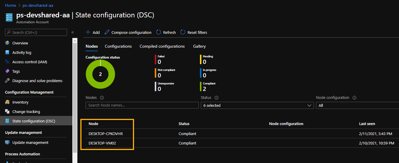 I hope that helps you get on board with Azure Automation Account and PowerShell DSC. The combination is compelling due to very little maintenance and management of the pull server and all the nuances that come with it.