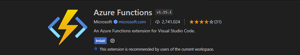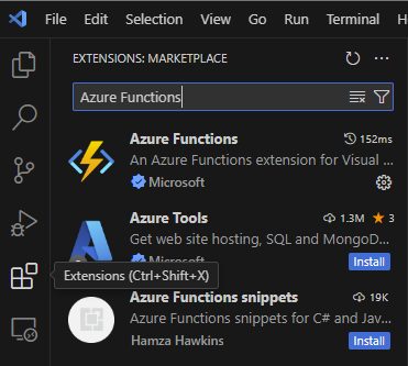 - Azure Functions Extension for VS Code: Install the Azure Functions extension in VS Code from the VS Code Marketplace.
