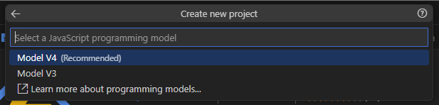 - Select Model v4 as the JavaScript programming model: