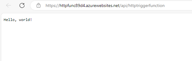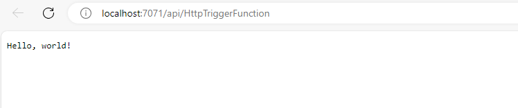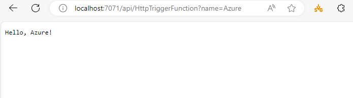http://localhost:7071/api/HttpTriggerFunction?name=Azureto test the function. You should see a response message saying Hello, Azure!: