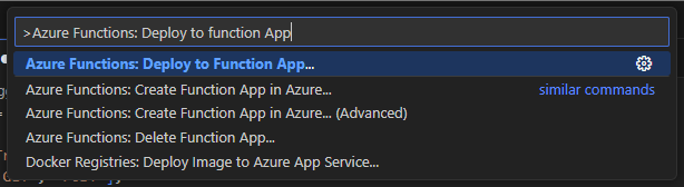 Ctrl+Shift+P), search Azure Functions: Deploy to Function App select Azure Functions: Deploy to Function App: