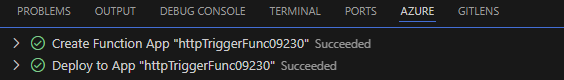 - You will see the following output in the terminal under the AZURE tab upon successful deployment: