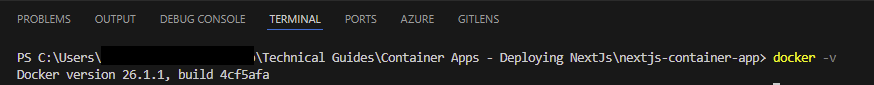 docker build -t nextjs-container-app .> 💡 If you get the following error when building your Docker image:ERROR: error during connect: this error may indicate that the docker daemon is not running: Head "http://%2F%2F.%2Fpipe%2Fdocker_engine/_ping": open //./pipe/docker_engine: The system cannot find the file specified.Make sure you have the Docker Desktop app running.This command will build the Docker image and tag it as