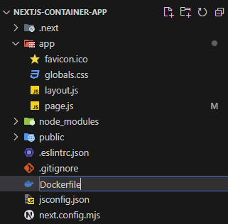 Dockerfileand add the following content:# Use the official Node.js image as the base image FROM node:18-alpine # Set the working directory inside the container WORKDIR /app # Copy package.json and package-lock.json to the working directory COPY package*.json ./ # Install dependencies RUN npm install # Copy the rest of the application code to the working directory COPY . . # Build the Next.js application RUN npm run build # Expose port 3000 to the outside world EXPOSE 3000 # Command to run the application CMD ["npm", "start"] -