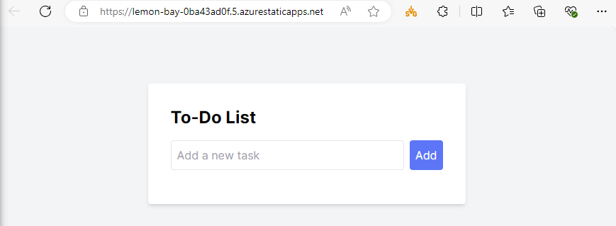Currently, the app is running in the local environment. By the end of this guide, the app will be hosted on Azure’s Static Web Apps service, taking advantage of its powerful features to ensure a seamless deployment experience.