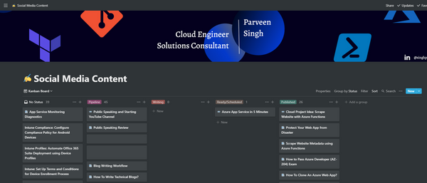 Here's what my notion dashboard for blogs looks like. Use Kanban View and list down your blog ideas every time you have something in mind so that next time you come back to write, you can pick one of those topics and start writing. I started using the same database for both Blogs and YouTube videos to keep track of them at the same time.