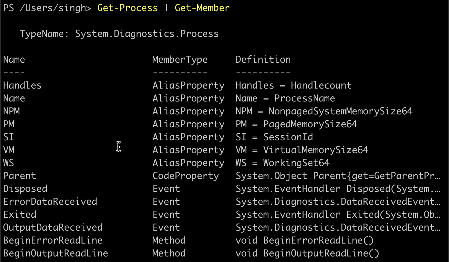 PowerShell Get-Process Pipe Get-Member Output
