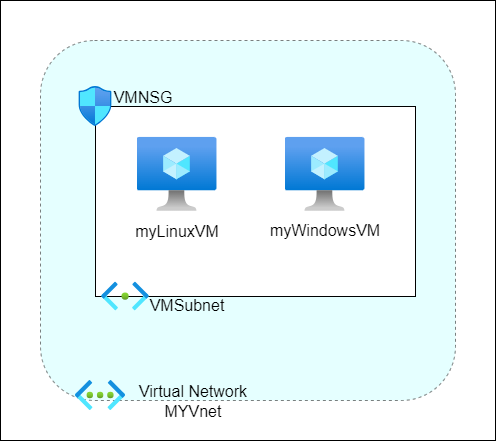 vmNSG. NSGs contain rules that allow or deny network traffic to the VMs, ensuring an additional layer of security. - Virtual Machines: We have two virtual machines within the subnet: