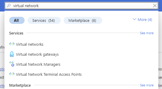In the Azure search bar, search for Virtual Networks and select Virtual Networks: