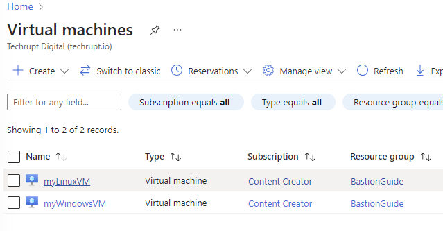 Let’s start by understanding my current setup before we secure our Virtual Machines with Azure Bastion. My current setup consists of: