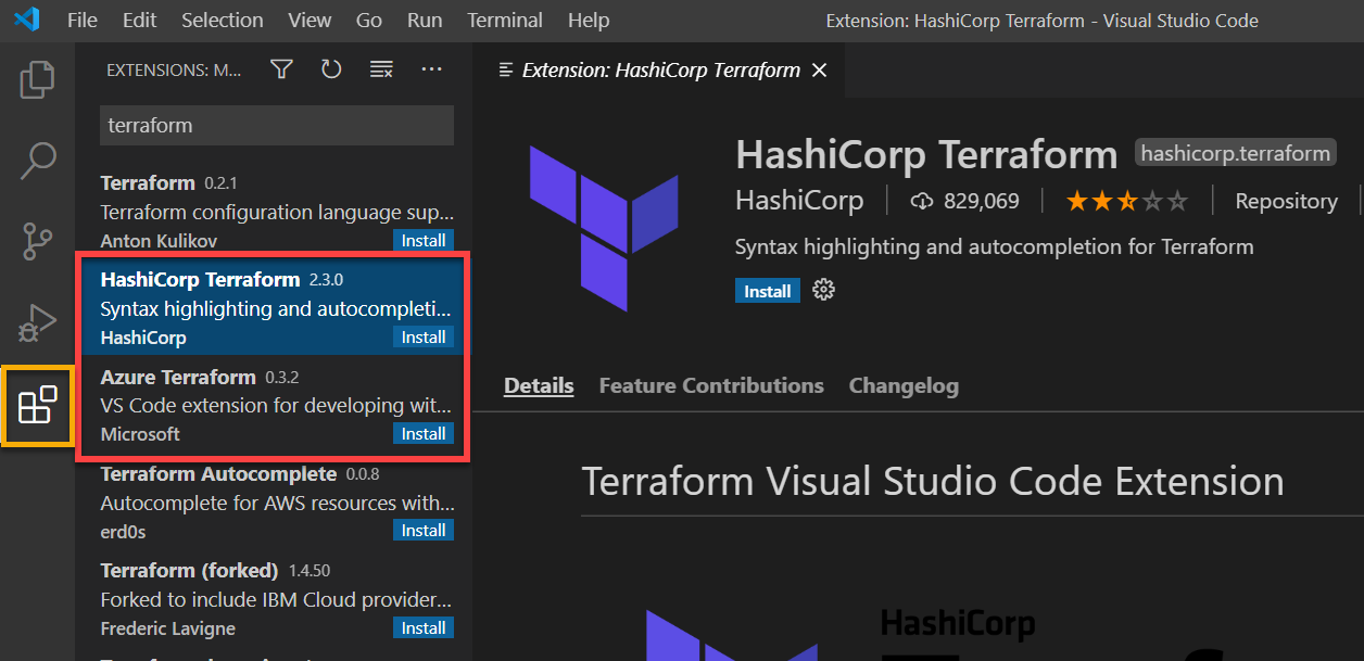 - Install both "Azure Terraform" and "HashiCorp Terraform" for a better experience while writing the configuration files.