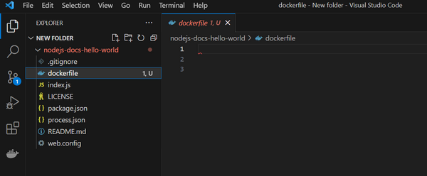 #change Directorycd nodejs-docs-hello-world/#create a dockerfilecat > dockerfile