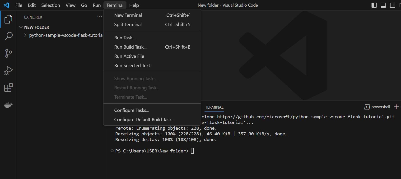 - Open the Terminal on VS Code ( or any editor of choice) and run the command to clone below a sample application: